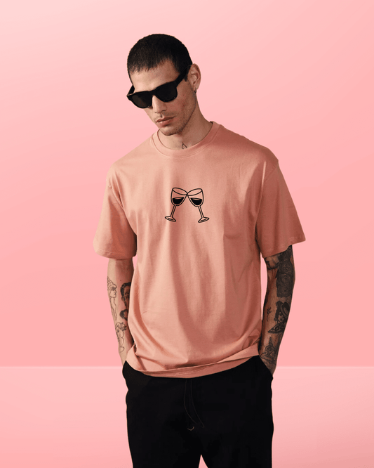 Wine Keeps the Going Salmon Pink Oversized Tshirt
