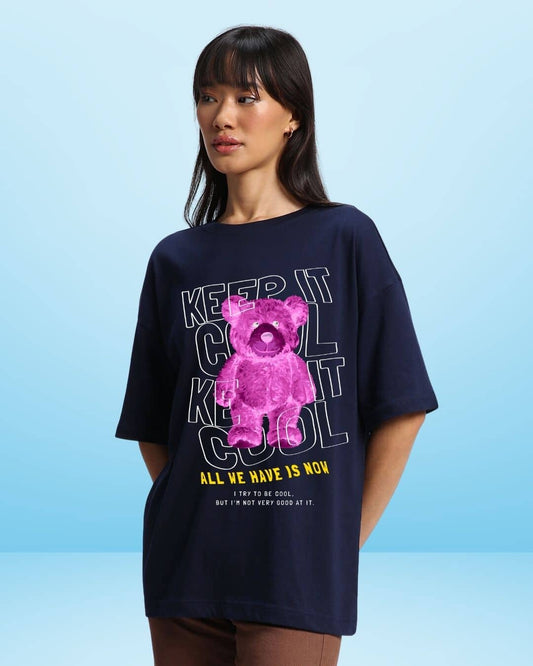 Keep it Cool Navy Blue Women's Oversized Tshirt.