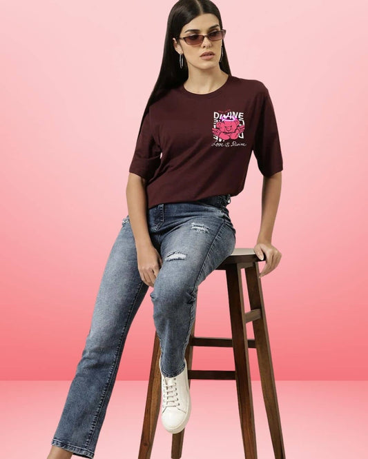 Divine Maroon Women's Oversized tshirt