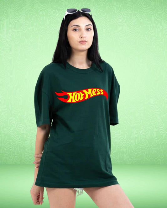 Sold outHot Mess Dark Green Oversized Tshirt