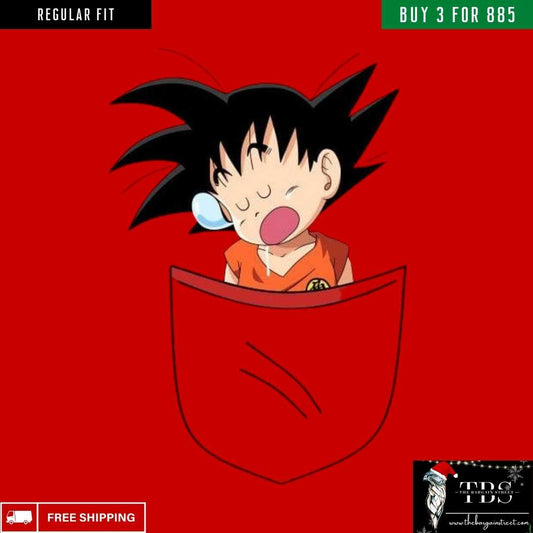 Dragon Ball Z Pocket Print Red Round Neck Tshirt