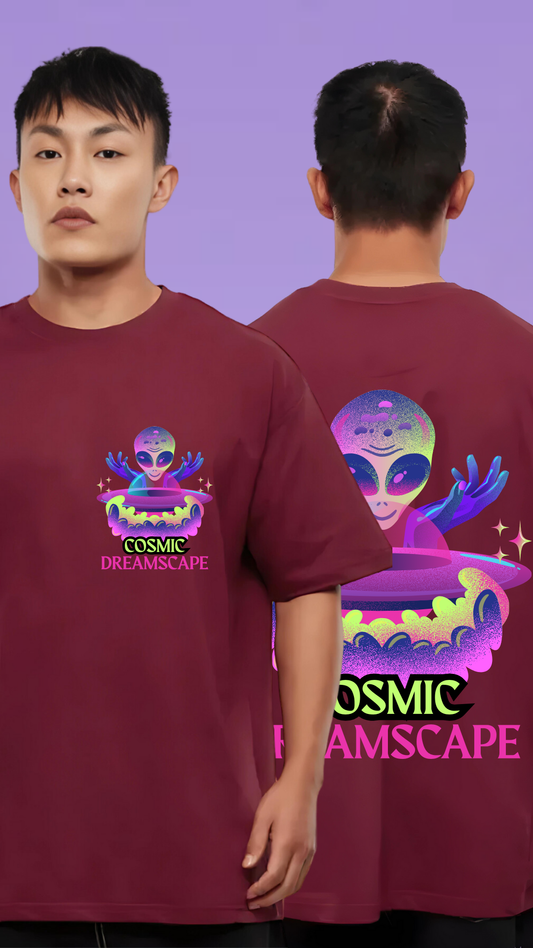 Cosmic Dreamscape Maroon Oversized Tshirt