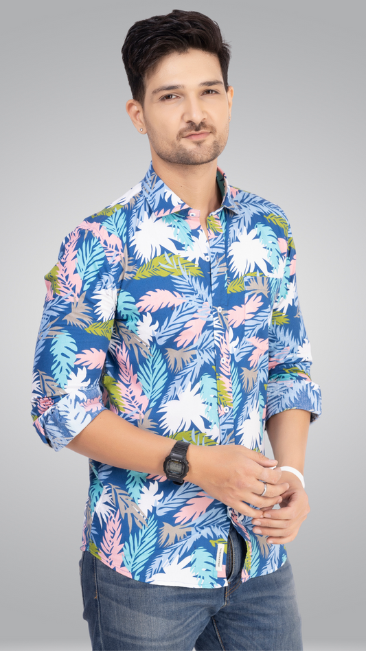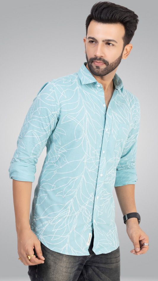 Sold outParty Printed Leafs Blue Shirt