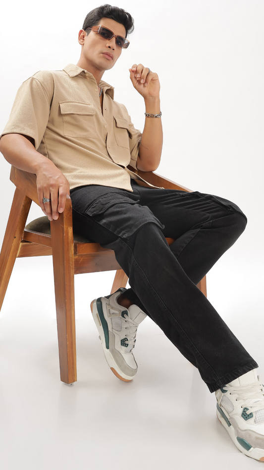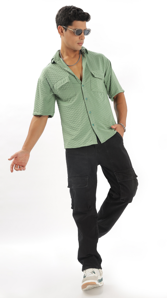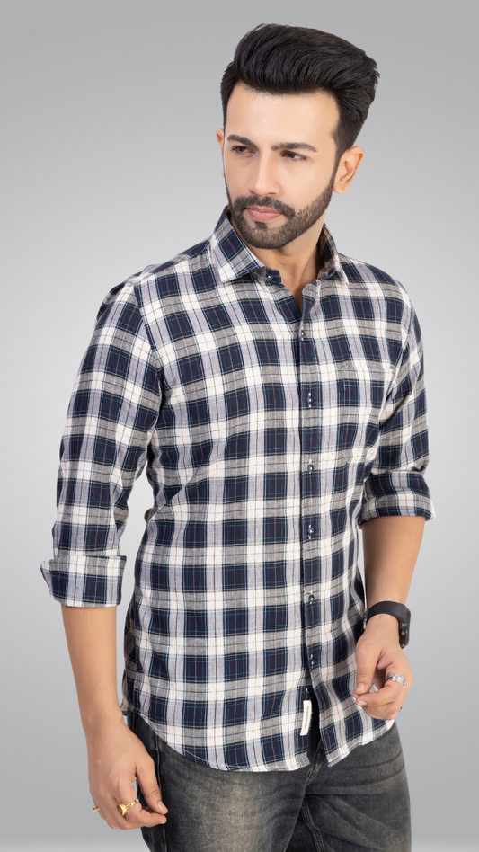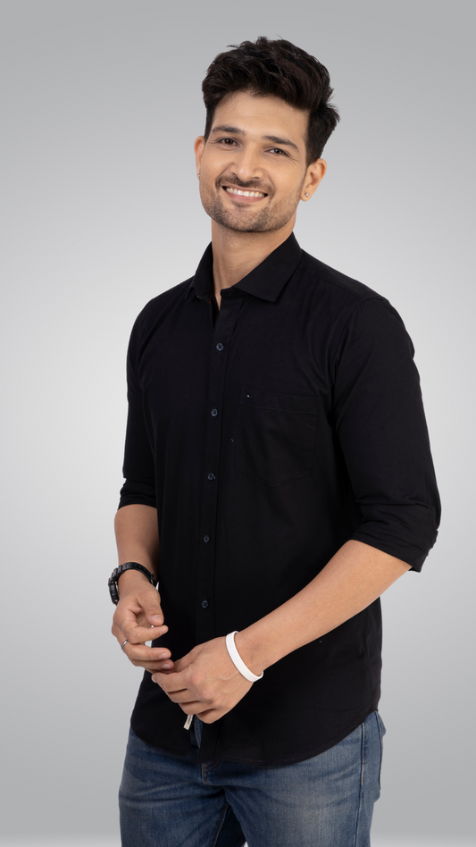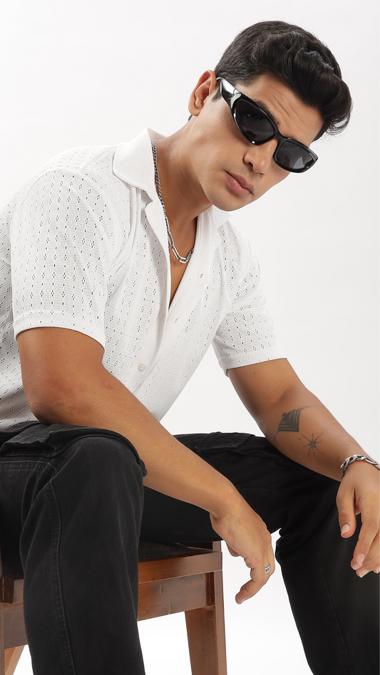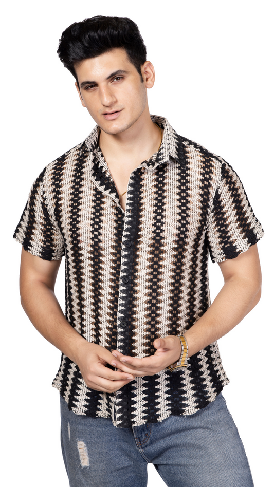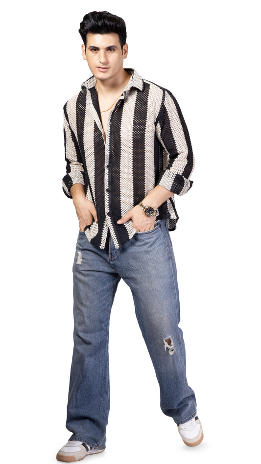 Black And White Big Stripe Full Sleeve Crochet Shirt