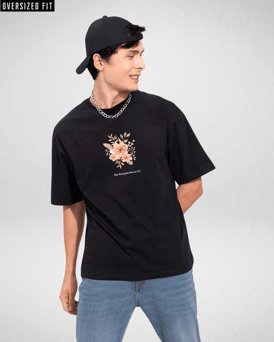 Floral Streetwear 220 Gsm Black Oversized Tshirt