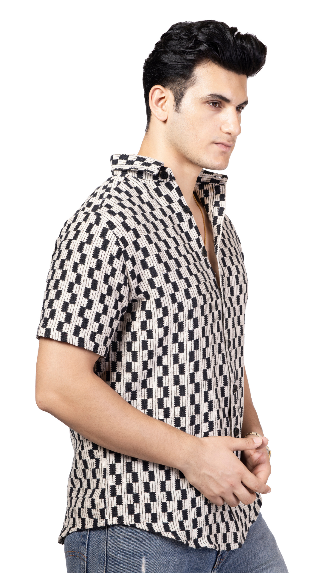 Checks Half Sleeve Crochet Shirt